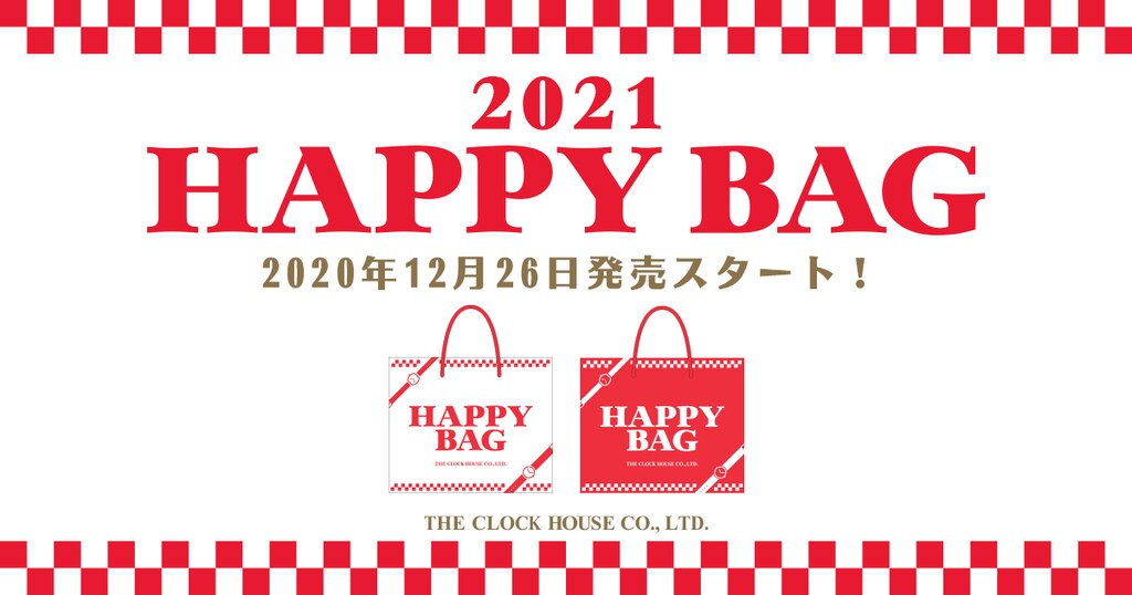 HAPPY BAGは2020年12月26日より、時計専門店ザ・クロックハウス店舗で販売いたします。 ※店舗によって販売開始日が異なる場合がございます。 ※レイクタウンアウトレット店・XP西荻窪店・平店では、HAPPY BAGの販売はございません。