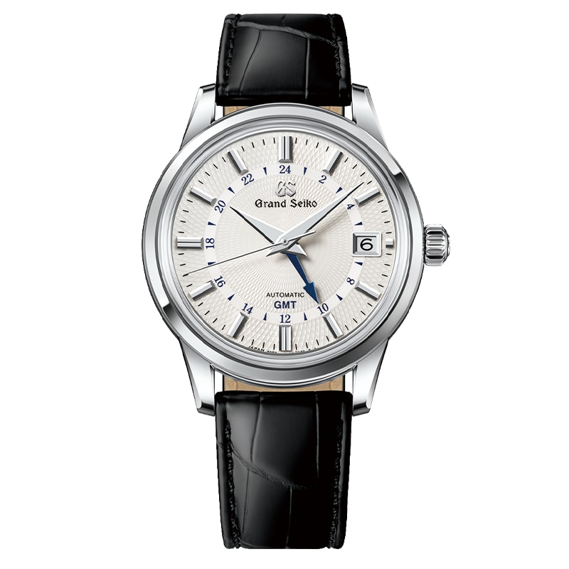 早春の季語「雪雫」から着想を得て、春の陽射しに輝く雪どけの雫をダイヤルに表現したクラシックスタイルのGMT機能付きモデルです。モダンな幾何学螺旋模様は、光の角度によって表情を変え、奥行きと動きを感じさせます。精緻なパターンが、ダイヤルに上質な立体感を与えます。搭載するムーブメントはメカニカル「キャリバー9S66」。最大巻上時約72時間(約3日間)の持続時間を確保しており、第二時刻を同時に指し示すGMT機能を備えています。ブルースチールの24時針が織りなす上品なクラシックスタイルに、モダンなダイヤルデザインが調和し、グランドセイコーならではの優雅さを演出します。
