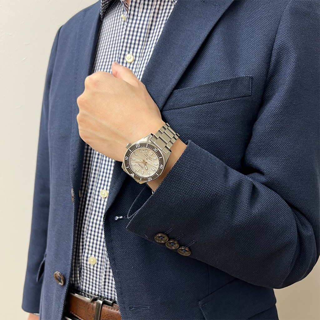 最大の特徴は、なんといっても文字盤の波模様でしょう。プロスペックスの証である裏蓋のウェーブマークに着想を得た模様がなんとも印象的です。
